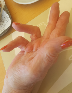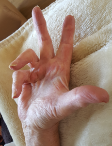 Before starting treatment, this case study’s index and middle finger were hard to move apart and 3rd and 4th finger tendons were very taut – good improvement seen after just 2 sessions, as seen in these pictures.